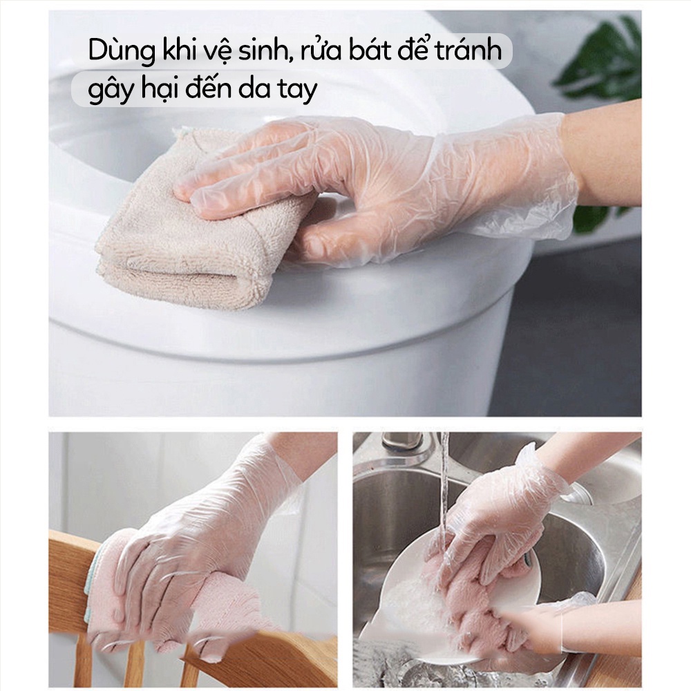 [CHÍNH HÃNG] Găng tay Victoria Bay chất liệu TPE siêu dai Găng tay cao su rửa bát nấu ăn vệ sinh không bột hộp 100 cái