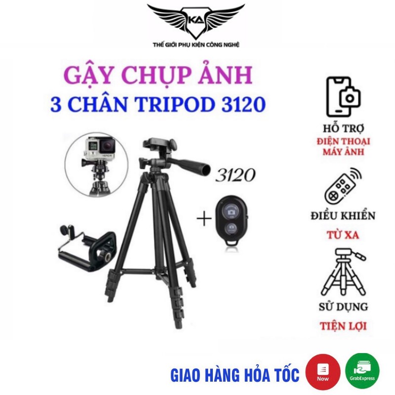 Gậy 3 chân chụp hình máy ảnh, điện thoại Tripod TF - 3120 loại tốt bền KarpinoSản phẩm bao gồm 1 thân tripod + 1 giá kẹp điện thoại ( tối đa 6.3 inch) + 1 bao đựng tripod