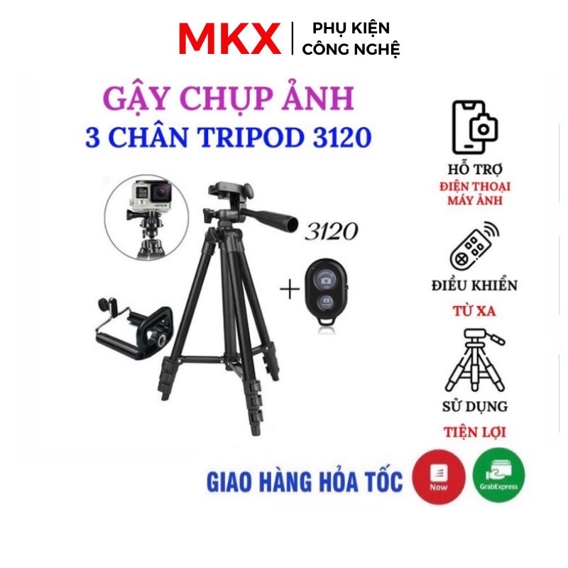 Gậy 3 chân chụp hình máy ảnh, điện thoại Tripod TF - 3120 loại tốt bềnSản phẩm bao gồm 1 thân tripod + 1 giá kẹp điện thoại ( tối đa 6.3 inch) + 1 bao đựng tripod