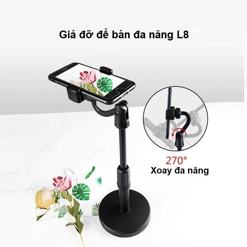 Giới thiệu CHÍNH HÃNG Giá Đỡ Điện Thoại livestream + Kẹp Điện Thoại Đa Năng xoay 360 Quay Phim, chụp ảnh L8 {BẢO HÀNH ĐỔI MỚI}