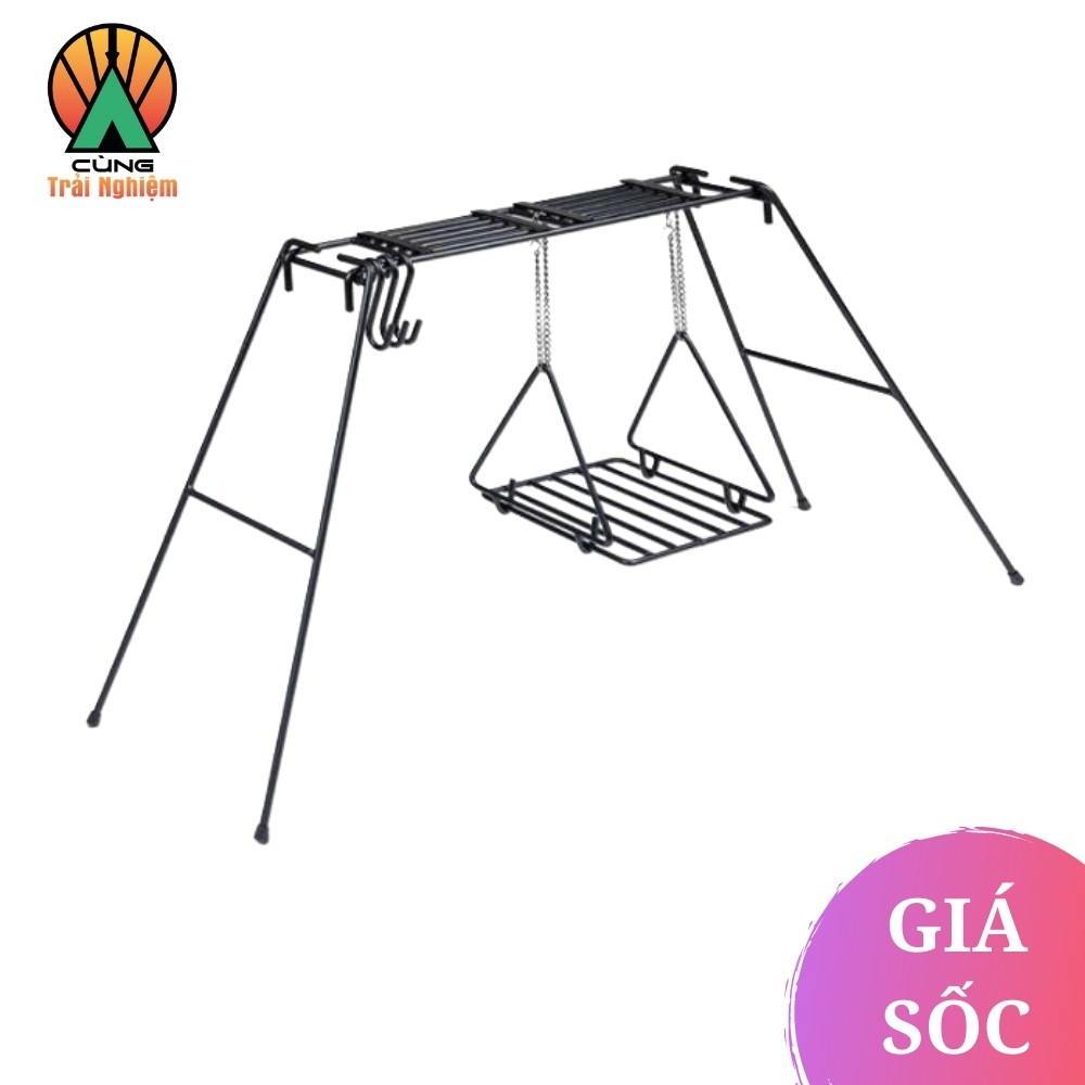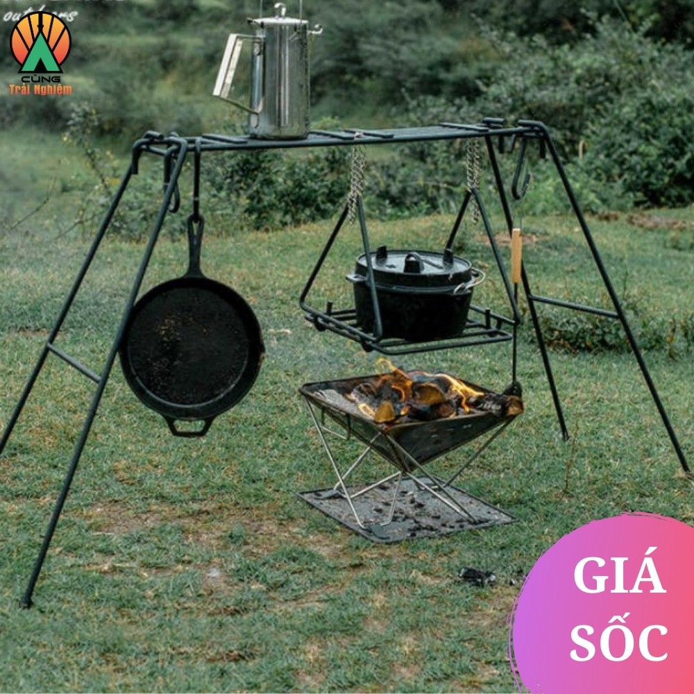 ✅ ĐẶC ĐIỂM NỔI BẬT- Giá Treo Nồi Dã Ngoại được thiết kế thông minh với nhiều móc treo để treo đồ đạc làm bếp và khung tam giác chắc