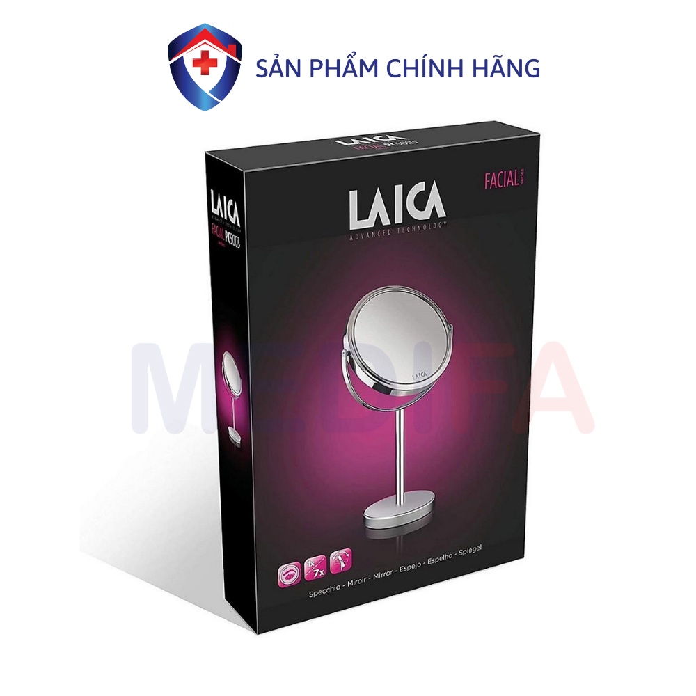Giới thiệu [CHÍNH HÃNG] Gương trang điểm Laica PC5003, thu phóng thông minh 1x hoặc 7x, chân đế chắc chắn, xoay 360 độ