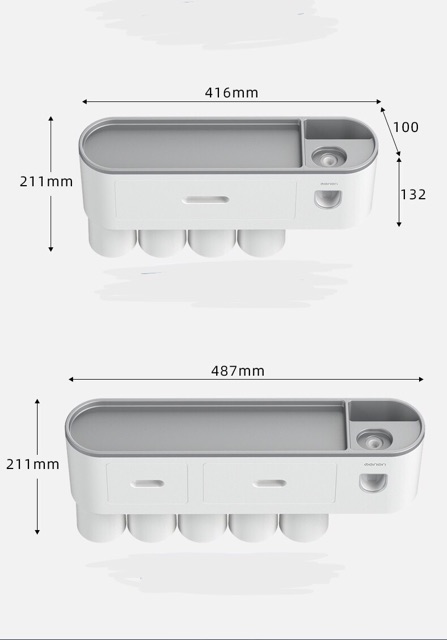 - Sản phẩm gồm: 1 Kệ nhà tắm tích hợp chức năng lấy kem tự động + Cốc hút từ tính + miếng dán tường