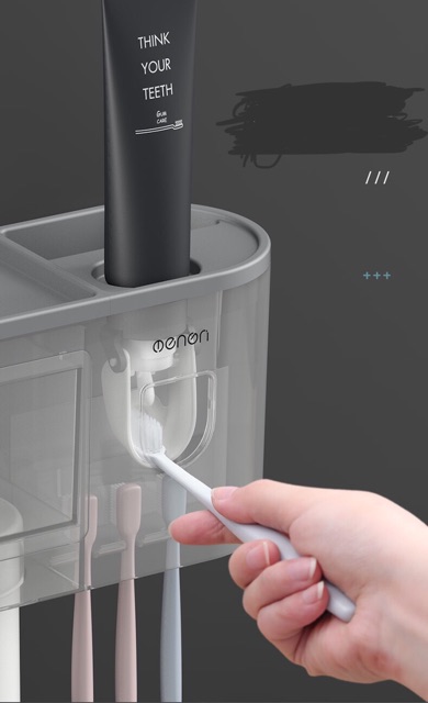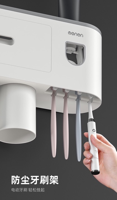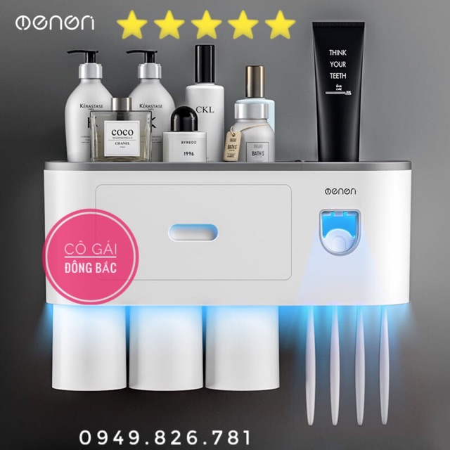 Kệ để đồ nhà tắm đa năng thông minh OENON kèm cốc hút từ tính có nhả kem đánh răng tự động dán tường -Cô Gái Đông Bắc
