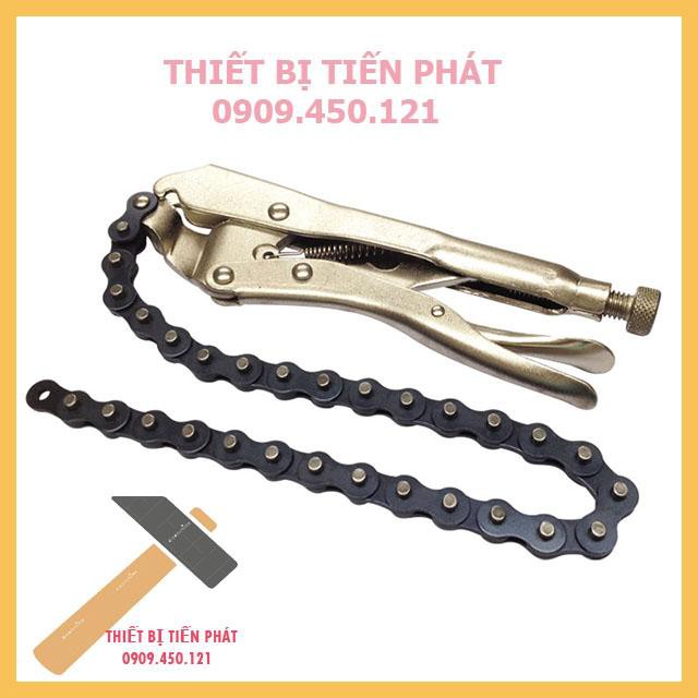 Kìm bấm dây xích là dụng cụ rất cần thiết cho người thợ chuyên sửa chữa đường ống nước bằng sắt. Dụng cụ này giúp người thợ mở và xiết các chi tiết hình tròn một cách nhanh chóng và dễ dàng.