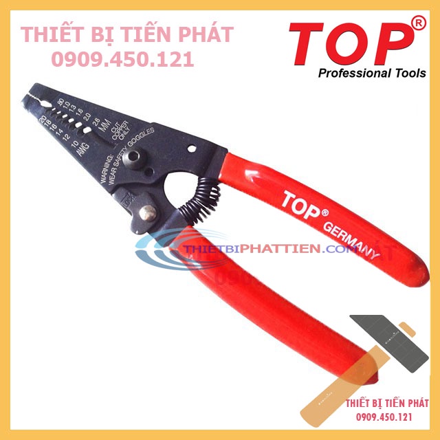 Kìm tuốt dây điện 6 inch thương hiệu TOP, được sản xuất tại Đài Loan và được chế tạo bằng thép cao cấp, giúp đảm bảo độ bền và độ chính xác cao.
