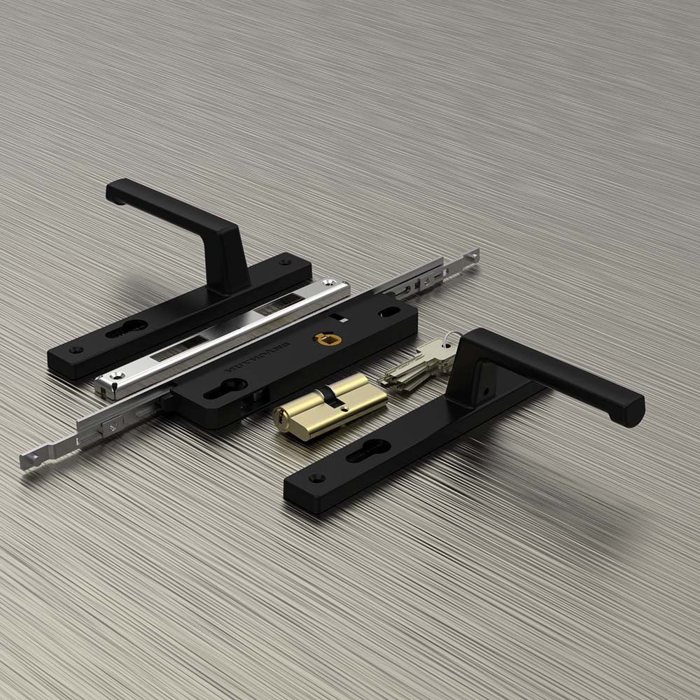 Thuộc dòng sản phẩm khóa tay nắm thông dụng dành cho cửa nhôm hệ của Huy Hoàng.Tay ốp khóa được sản xuất bằng hợp kim ALDC-2, Sơn đen.