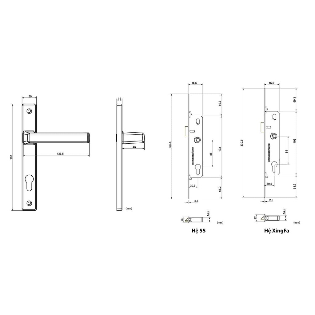 Sản phẩm khóa tay nắm TNAP80-STR có 2 phiên bản thân phù hợp với các loại nhôm hệ thông dụng như Hệ 55, Hệ XingFa...và 2 phiên bản ốp phụ phù hợp cho các loại cửa 1 cánh hoặc 2 cánh.