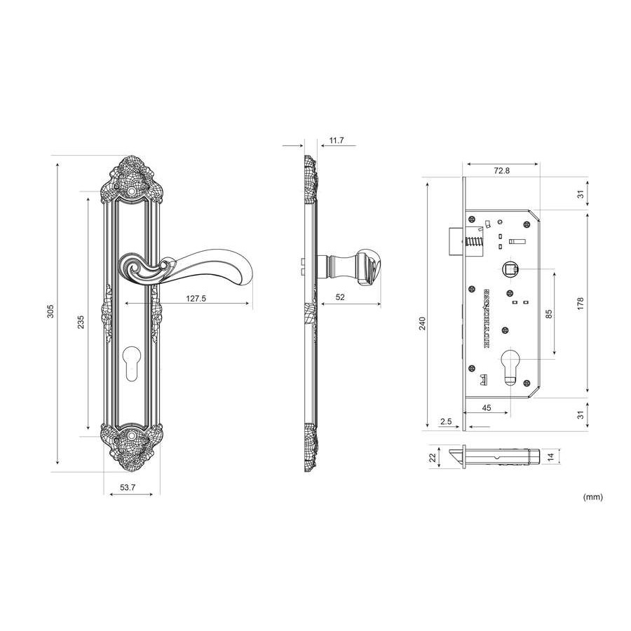 Ổ khóa làm bằng đồng vàng (đồng thau), được thiết kế chìa vi tính ( 7 bi ) tránh bị trùng chìa, rất an toàn.