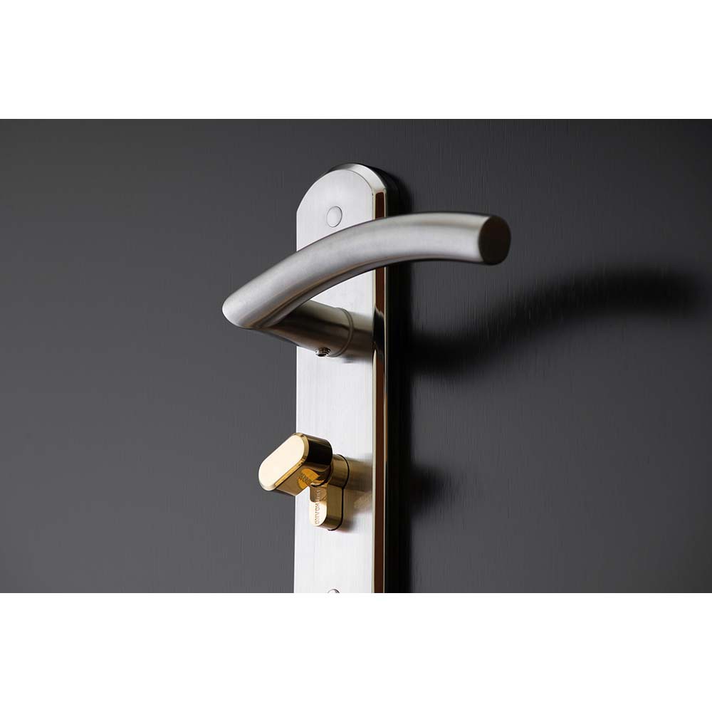 Ổ khóa bằng đồng vàng (đồng thau), được thiết kế chìa vi tính ( 7 bi ) tránh bị trùng chìa, rất an toàn.