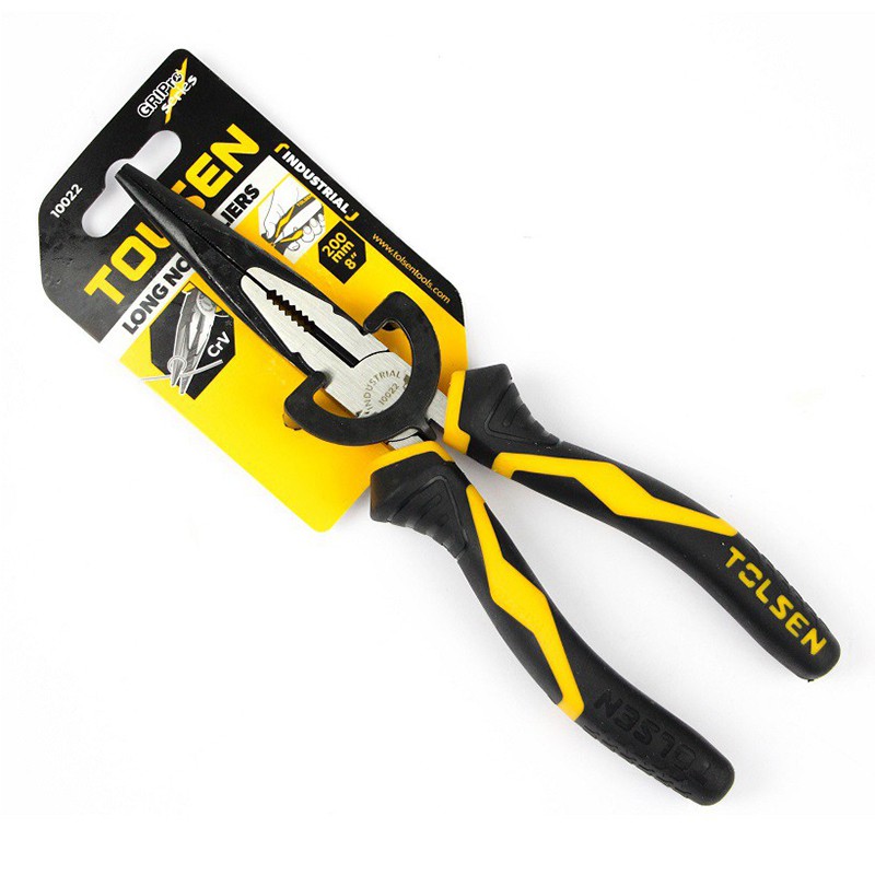 KÌM RĂNG MŨI NHỌN CÔNG NGHIỆP TOLSEN- Thân kìm làm từ chất liệu thép Cr-V cao cấp, cứng chắc và bền. Tay cầm bằng nhựa đúc 2 lớp ( màu vàng giúp bám chắc tay kìm còn màu đen nhựa mềm giúp cho việc cầm khi sử dụng thoải mái hơn và bớt bị mỏi tay khi sử dụng nhiều )