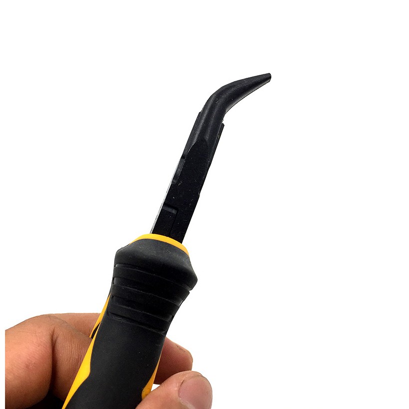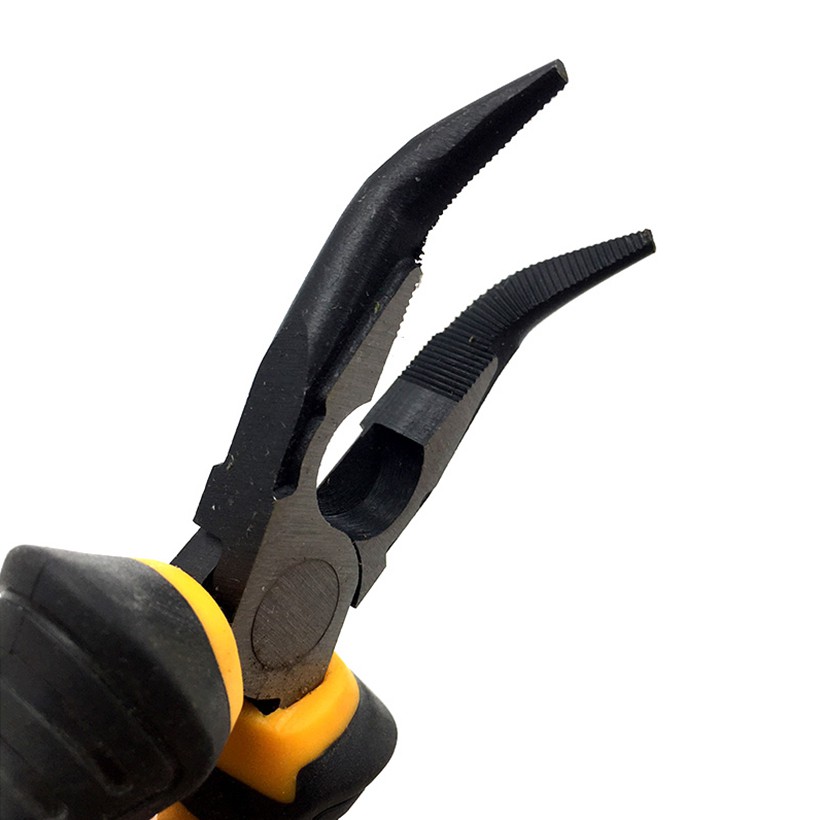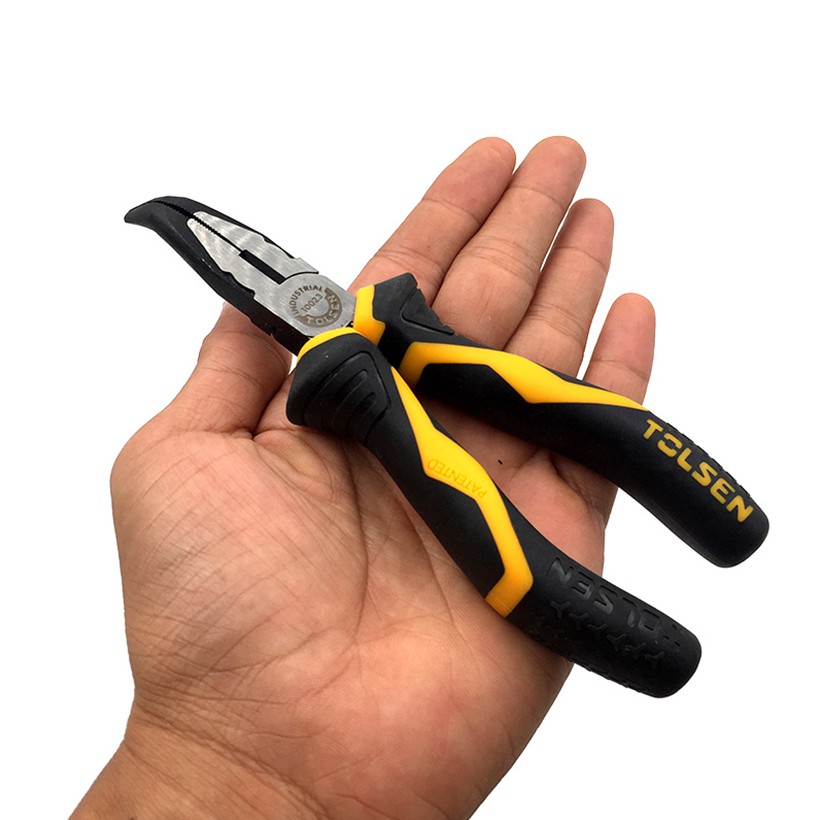 KÌM RĂNG MŨI NHỌN CONG 45 ĐỘ CÔNG NGHIỆP TOLSEN- Thân kìm làm từ chất liệu thép Cr-V cao cấp, cứng chắc và bền. Tay cầm bằng nhựa đúc 2 lớp ( màu vàng giúp bám chắc tay kìm còn màu đen nhựa mềm giúp cho việc cầm khi sử dụng thoải mái hơn và bớt bị mỏi tay khi sử dụng nhiều )