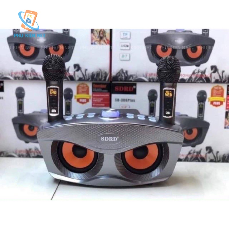Loa Karaoke mini SD-306 kiểu dáng khá bắt mắt với hình dáng chim cú mèo, thiết kế tinh tế với hai mắt là 2 loa trông rất đặc biệt. Công suất 20w cho âm thanh lớn thoải mái hát trong nhà. Chất âm bass của loa sâu và chắc, âm treb bén. Tổng hợp tạo ra âm thanh trong & ấm, tuyệt vời. Đi kèm theo Loa Karaoke mini SD-306 là 2 micro không dây pin sạc cao cấp, tích hợp các phím điều chỉnh trên thân micro như: chỉnh Echo, chỉnh Volume, hiệu ứng giọng hát. Micro hát nhẹ, dễ hát, giọng hát trung thật. Trên thân loa có rãnh khuyết tiện cho việc làm đế tựa điện thoại, máy tính bảng khi hát hoặc xem phim.