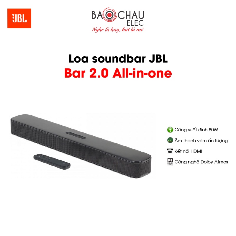 [CHÍNH HÃNG] Loa Soundbar JBL Bar 2.0 All-In-One | Công Suất 80W - Công Nghệ Dolby Atmos - Âm Thanh Vòm
