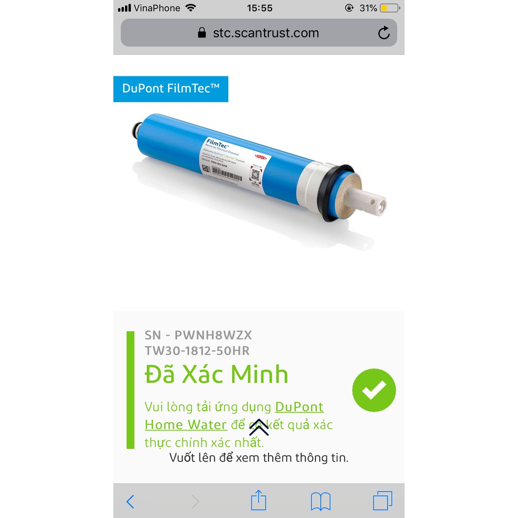 👉 Từ tháng 4/2020 Hãng Dow đã quyết định thay đổi tên sản phẩm màng RO từ DOW FILMTEC thành DuPont FilmTec. Màng vẫn được nhập khẩu chính hãng từ Mỹ, trên tem có mã QR để xác thực hàng chính hãng. Sự thay đổi này không hề làm ảnh hưởng đến chất lượng sản phẩm.