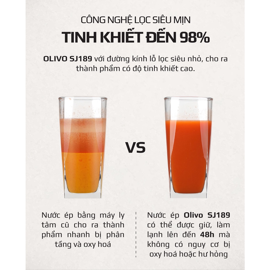 [Mã ELHA10 giảm 6% đơn 5TR] [CHÍNH HÃNG] Máy Ép Chậm OLIVO SJ 189 - Ép Trái Cây Hoa Quả, Siêu Kiệt Bã, Dễ Vệ Sinh