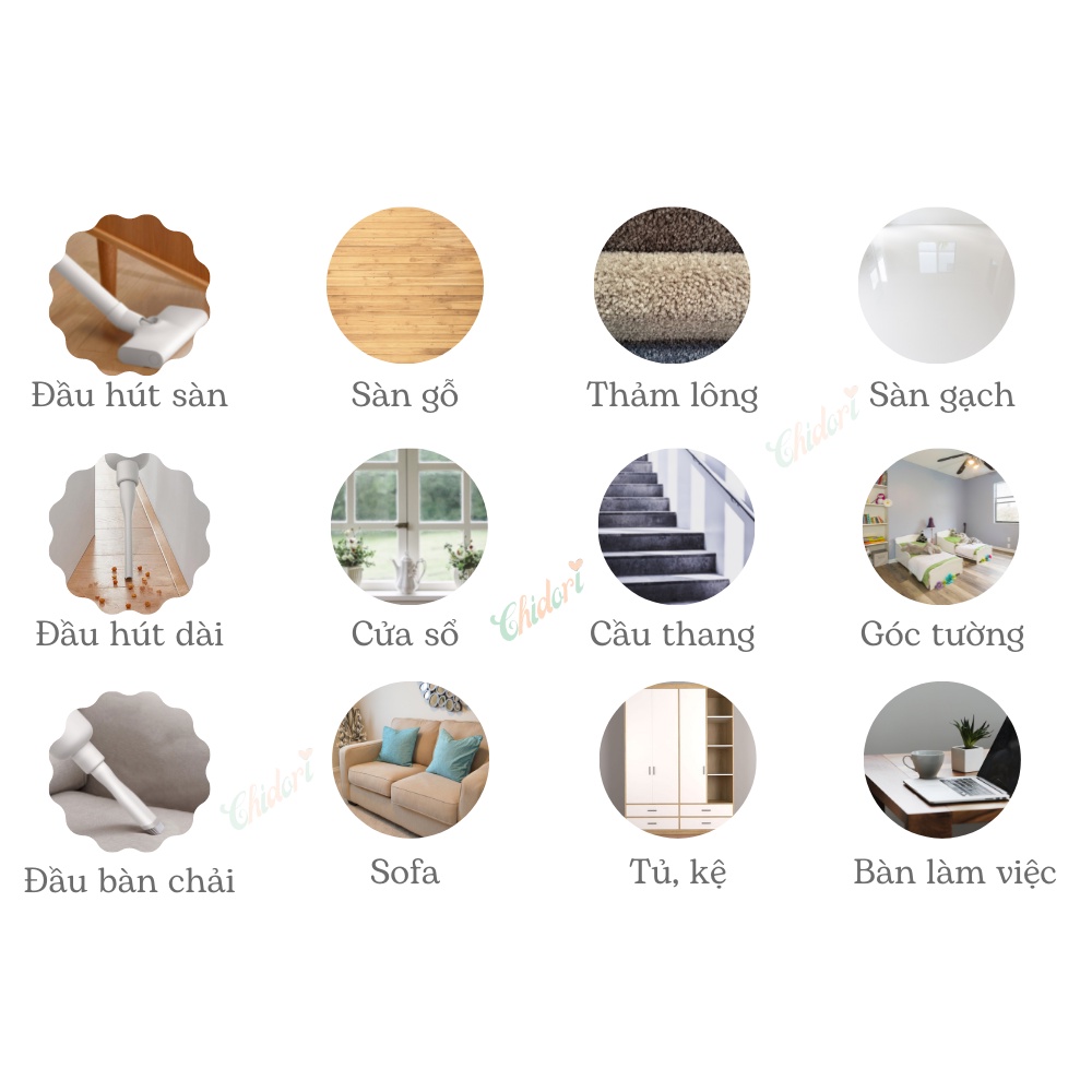 ✔️ Trang bị 3 đầu hút gồm đầu hút sàn, đầu hút khe, đầu hút gắn bàn chải, thuận tiện làm sạch mọi ngóc ngách trong nhà