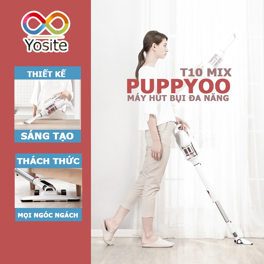 "PUPPYOO là thương hiệu máy hút bụi hàng đầu thế giới với những sản phẩm là Best-Seller trên Amazon. Máy hút bụi của PUPPYOO cũng được bình chọn Amazon's Choice dành cho những sản phẩm chất lượng cao, giá tốt nhất.Dòng sản phẩm máy hút bụi cầm tay không dây là một lựa chọn tuyệt vời nếu bạn đang tìm kiếm một chiếc máy mạnh mẽ, đa năng, nhưng nhỏ gọn, dễ mang vác, di chuyển. Đặc biệt chiếc máy hút bụi PUPPYOO T10 Mix này còn được trang bị một ống hút có thể gập 90 độ giúp bạn dễ dàng hút các vị trí cực thấp mà không cần phải nằm bò xuống mặt sàn.
