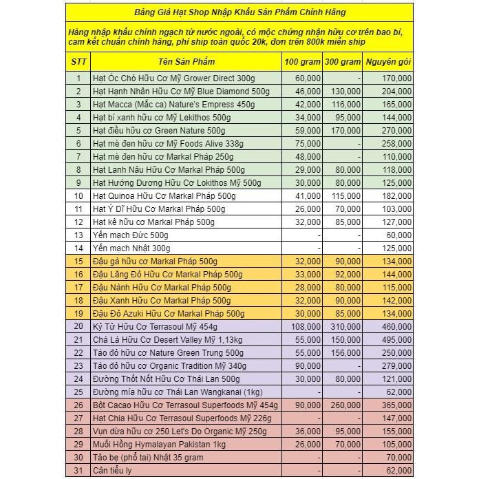• Được tư vấn TRỌN ĐỜI cách mix hạt theo phương pháp thực dưỡng (Vui lòng liên hệ shop để biết thêm thông tin chi tiết)