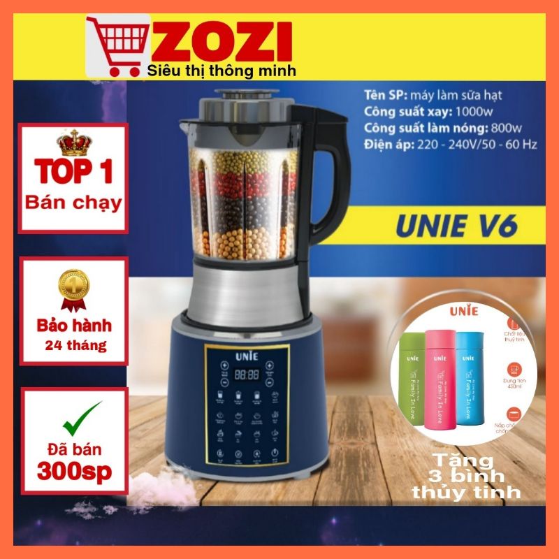 [CHÍNH HÃNG] Máy làm sữa hạt UNIE V6, Máy làm sữa hạt đa năng Cảm ứng điện tử, công nghệ mới chống trào BH 24 tháng> TẶNG 3 BÌNH THỦY TINH + Sách: 101 công thức làm sữa hạt