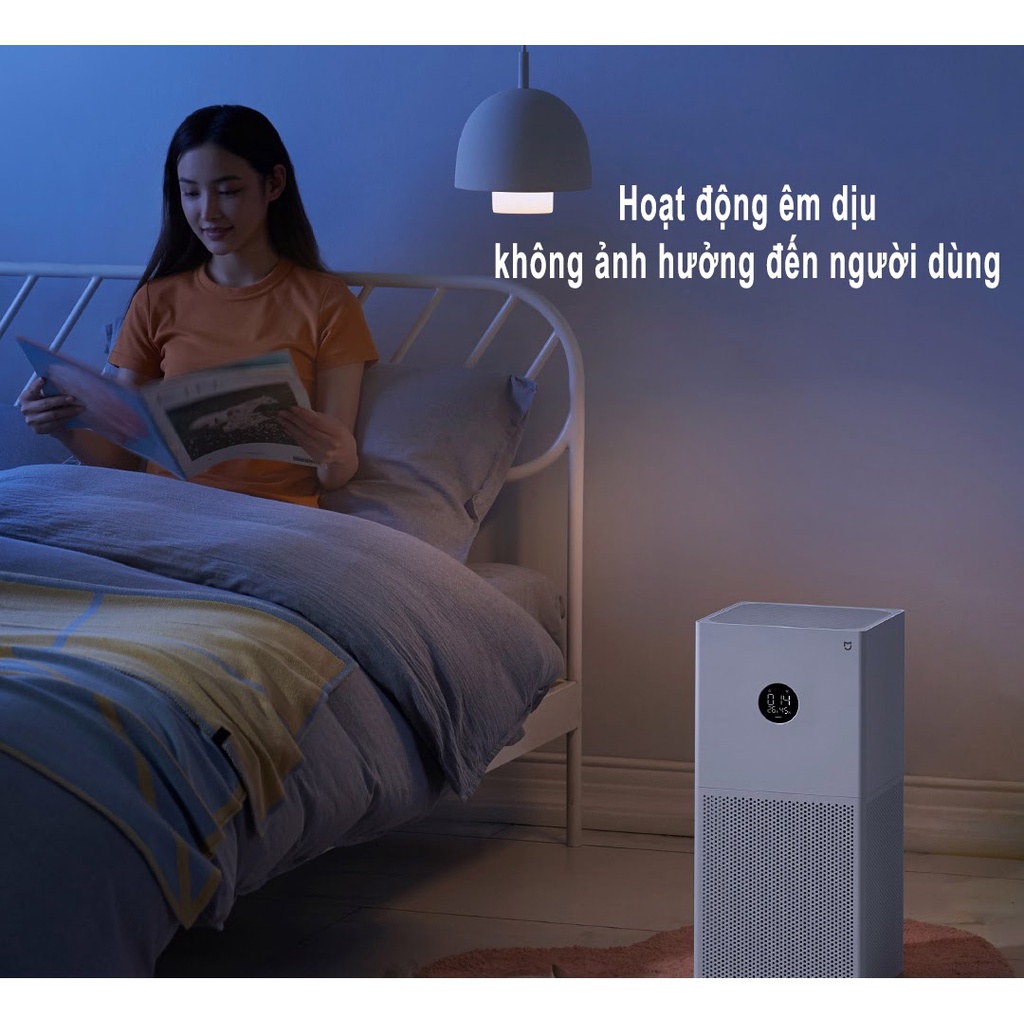 - Dù máy lọc không khí luôn hoạt động với hiệu năng cao nhưng nó vẫn đảm bảo được sự êm ái cần thiết, tiếng ồn chỉ ở mức 35.8dB, siêu yên tĩnh. Không làm ảnh hưởng đến giấc ngủ và sinh hoạt của người dùng. Bạn cũng có thể cài đặt, tắt độ sáng màn hình buổi tối để không ảnh hưởng tới giấc ngủ.