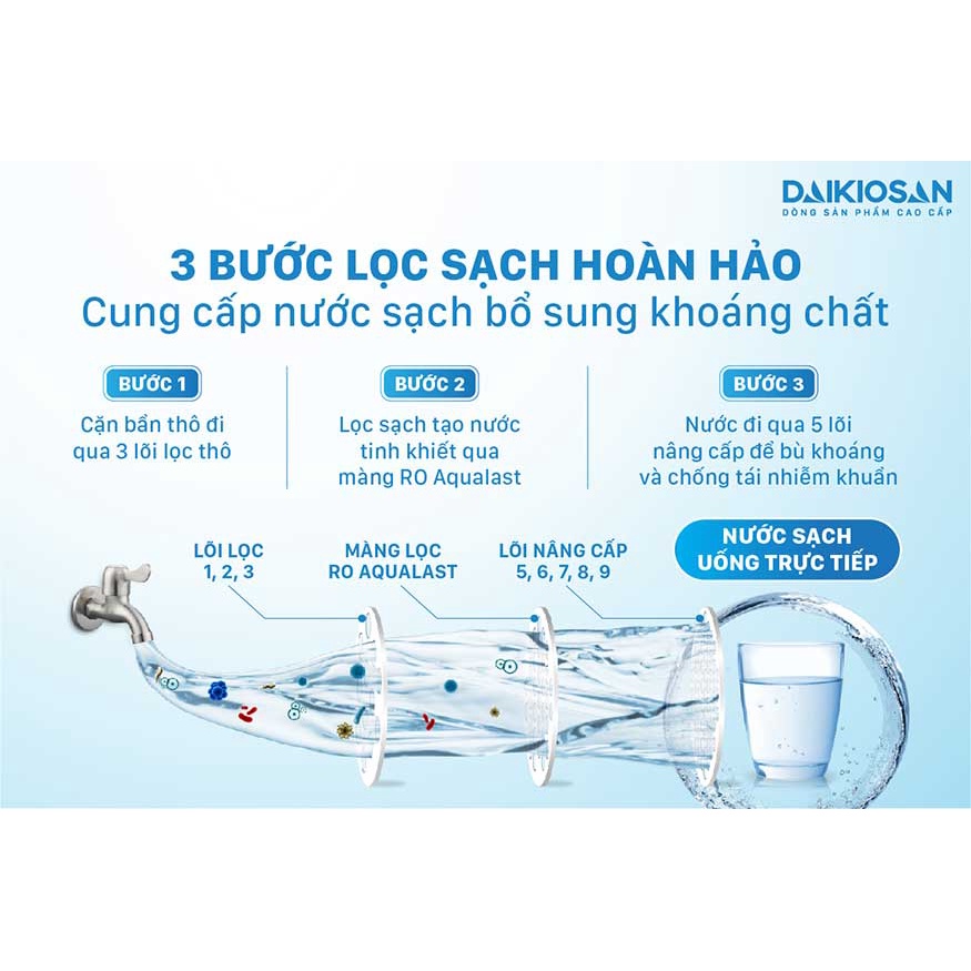 3 bước lọc của máy lọc nước RO 9 cấp Daikiosan