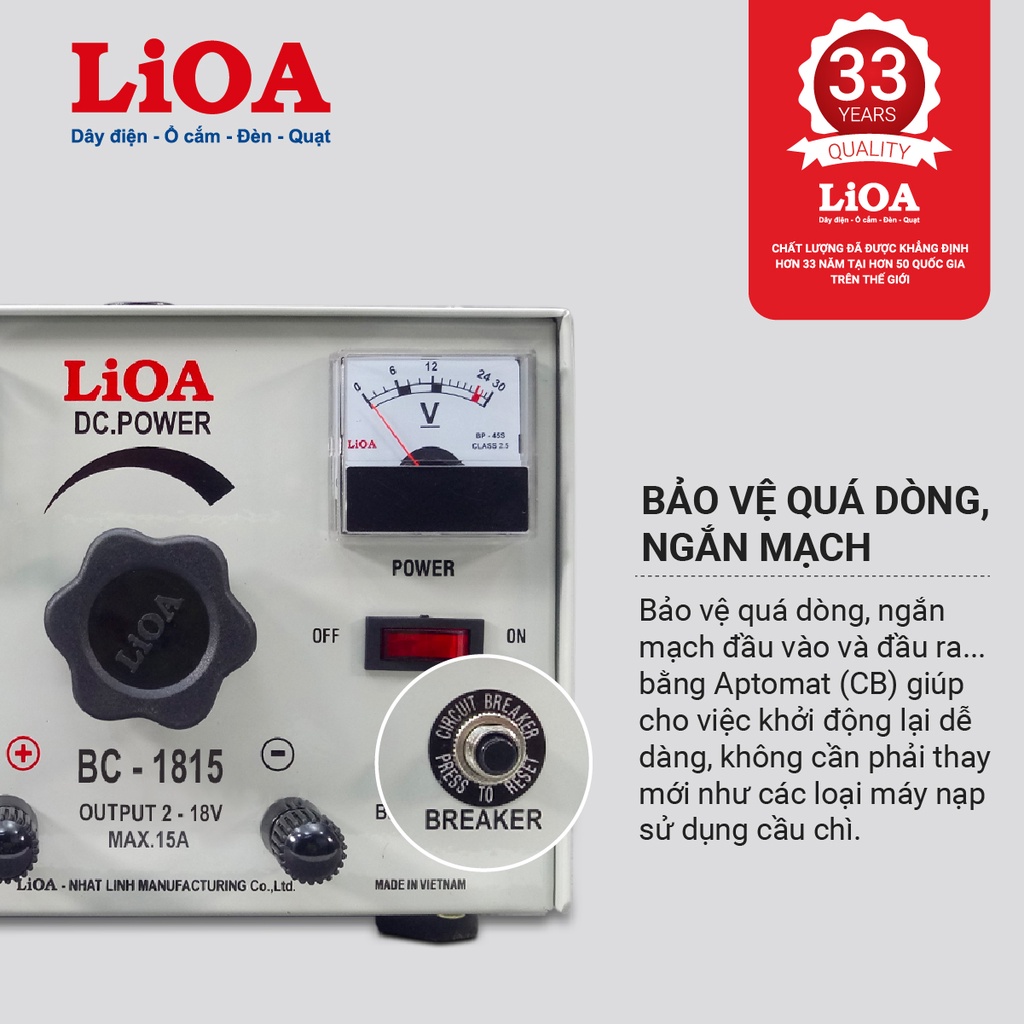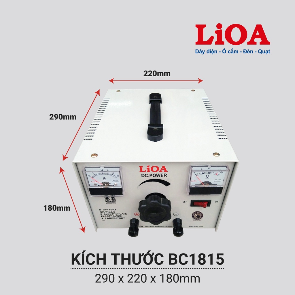 [CHÍNH HÃNG] Máy nạp ắc quy LiOA BC1815 - Máy sạc bình ắc quy LiOA 12V dòng 15A cho oto, xe máy, máy xúc, máy cẩu⭐️GIỚI THIỆU MÁY NẠP ẮC QUY LiOA BC1815