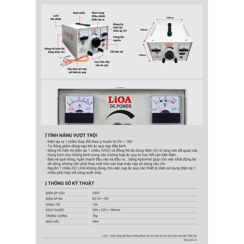 Thiết Bị Điện Gia Dụng > Khác || [CHÍNH HÃNG] Máy nạp ắc quy LiOA BC1815 sạc bình 12V dòng 15A cho oto, xe máy, máy xúc, máy cẩuCòn hàng