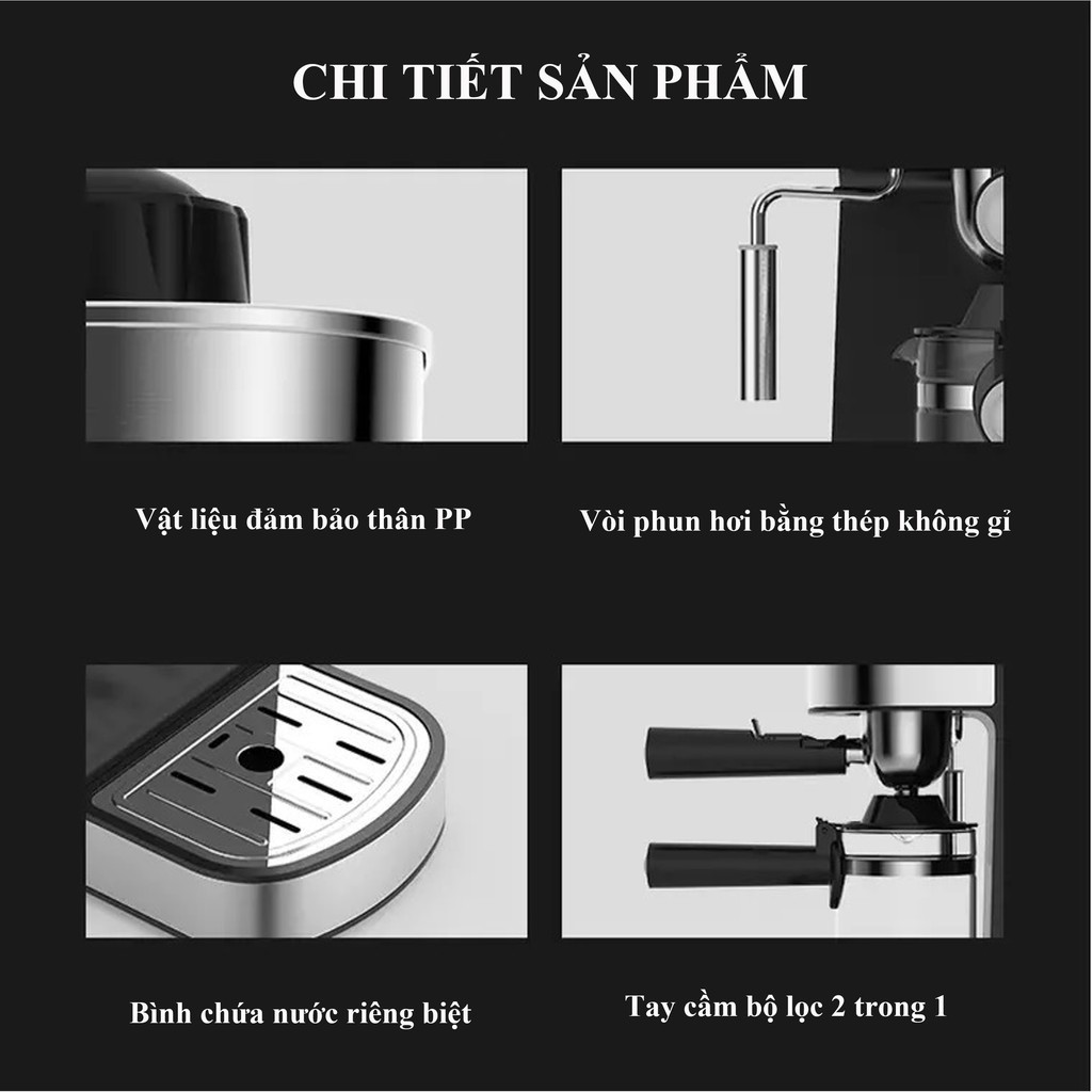 - Phụ kiện kèm theo: Tay cầm, bình chứa cà phê, muỗng cà phê, lưới lọc bằng inox siêu bền