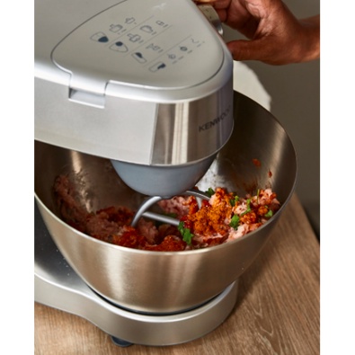 - Máy Trộn Đa Năng Kenwood KHC29.H0SI được thiết kế để nhào bột theo thời gian. Tính đa năng thể hiện qua việc không chỉ làm bánh, mà còn làm pizza, bánh mì, ép thực phẩm, trái cấy hoặc cắt rau củ quả.