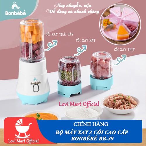 [ CHÍNH HÃNG ] Máy xay 3 cối đa năng cao cấp Bonbébé BB-39 - Máy xay Bonbébé ăn dặm 3 Cốc Thủy Tinh