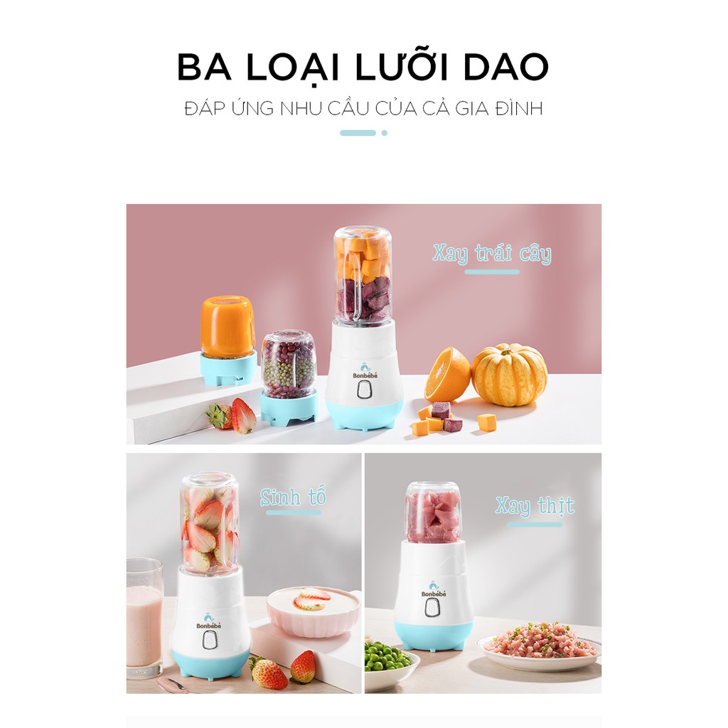 Thiết Bị Điện Gia Dụng > Đồ gia dụng nhà bếp > Máy ép, Xay sinh tố & Máy làm sữa đậu nành || [ CHÍNH HÃNG ] Máy xay 3 cối đa năng cao cấp Bonbébé BB-39 - Máy xay Bonbébé ăn dặm 3 Cốc Thủy TinhCòn hàng