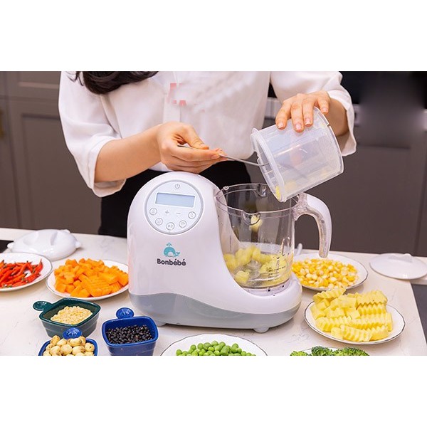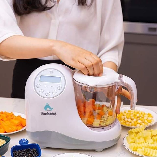Từ nay mẹ sẽ không còn phải đau đầu nghĩ mua máy này máy nọ để chế biến đồ ăn cho bé bởi đã có EM MÁY XAY HẤP 5IN1 BONBÉBÉ nhỏ gọn mà vô cùng đa năng luôn ạ.