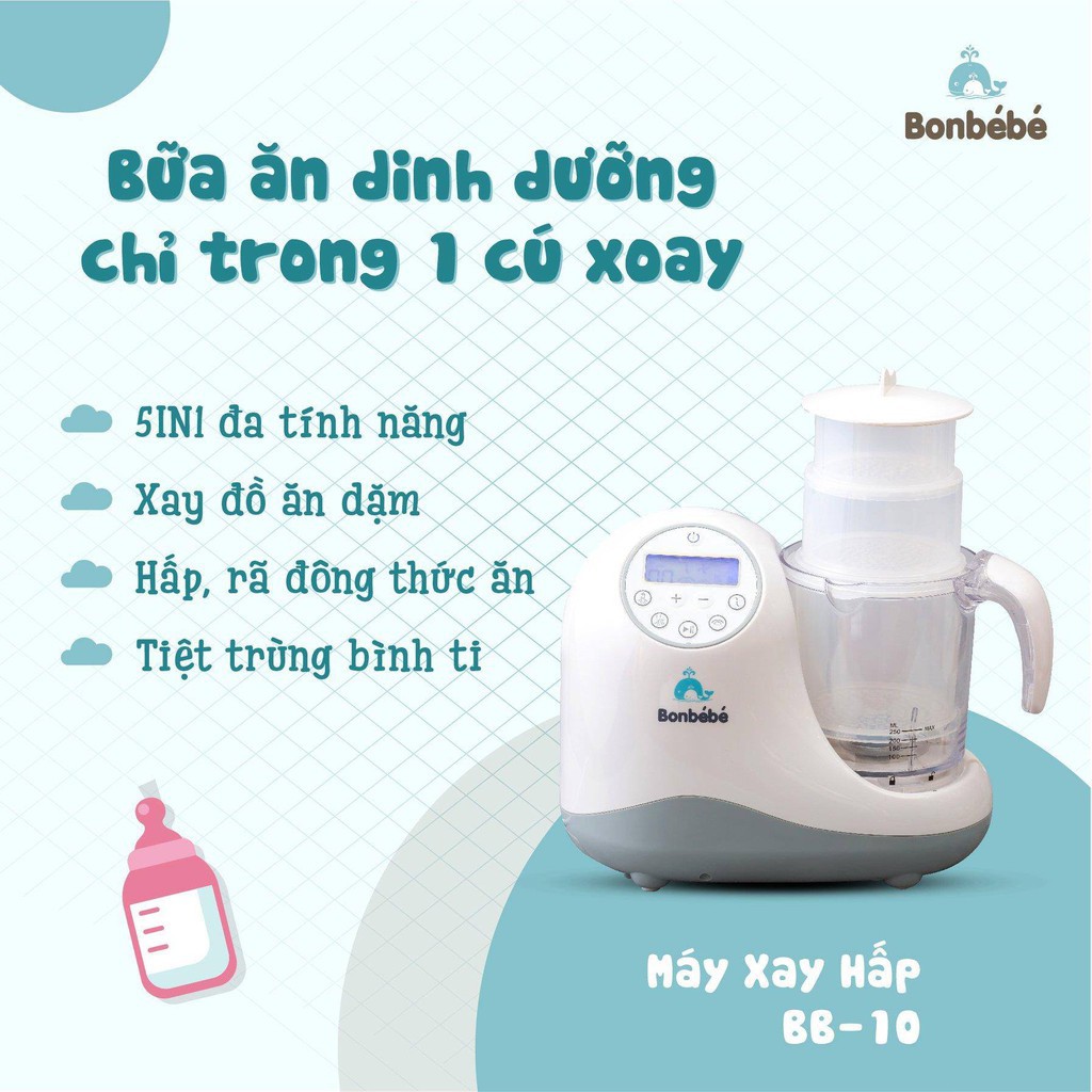 [ CHÍNH HÃNG ] Máy xay hấp tiệt trung đa năng 5 trong 1 bonbebe bb10