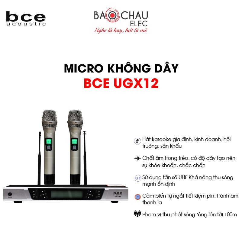 [CHÍNH HÃNG] Micro Karaoke Không Dây BCE UGX12 | Hát Karaoke Hay, Chống Hú - 2 tay micro không dây + 1 đầu thu - Giá rẻ