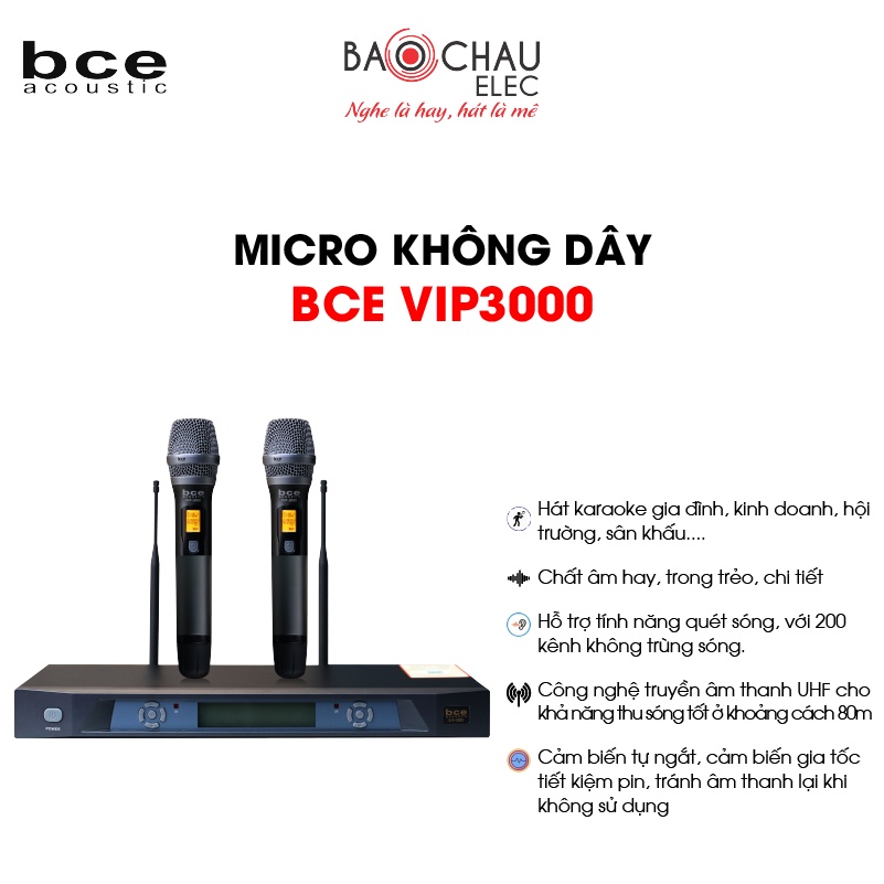 Thiết Bị Âm Thanh > Micro thu âm || [CHÍNH HÃNG] Micro Karaoke Không Dây BCE VIP 3000 | Hát Karaoke Hay - 2 tay micro không dây + 1 đầu thu - Hát NhạyCòn hàng