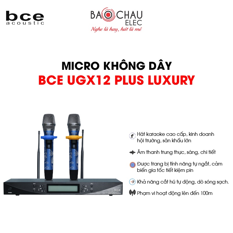 [CHÍNH HÃNG] Micro Karaoke Không Dây BCE UGX 12 Plus Luxury | Hát Karaoke Hay - 2 tay micro không dây + 1 đầu thu