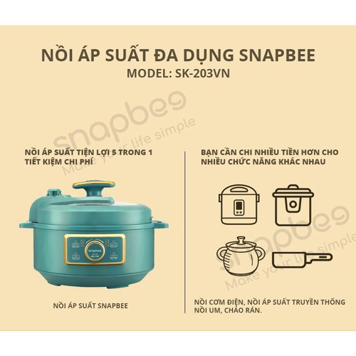 Giới thiệu [CHÍNH HÃNG] Nồi Áp Suất Đa Năng Hầm Xương Cháo Gà SNAPBEE Nồi Hầm Áp Suất Xuất Cháo Chậm Cho Bé Điện Tử
