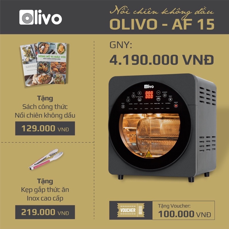 𝐍𝐎̂̀𝐈 𝐂𝐇𝐈𝐄̂𝐍 𝐊𝐇𝐎̂𝐍𝐆 𝐃𝐀̂̀𝐔 𝐱 𝐋𝐎̀ 𝐍𝐔̛𝐎̛́𝐍𝐆 𝐎𝐋𝐈𝐕𝐎 𝐀𝐅𝟏𝟓 🇺🇸🔥 Nồi chiên không dầu x lò nướng Olivo AF15 - Chân ái của mọi chị em nội trợ, giúp cho việc nấu nướng trở nên dễ dàng hơn bao giờ hết!