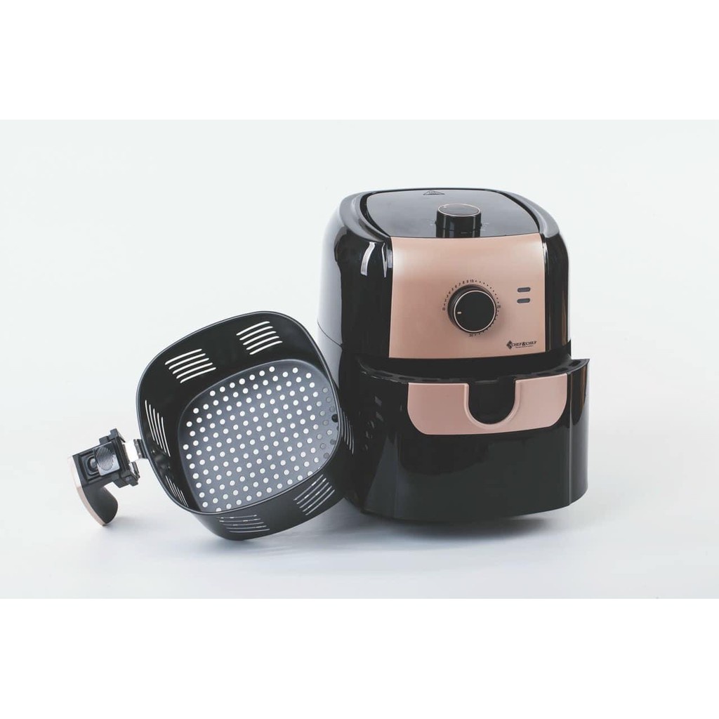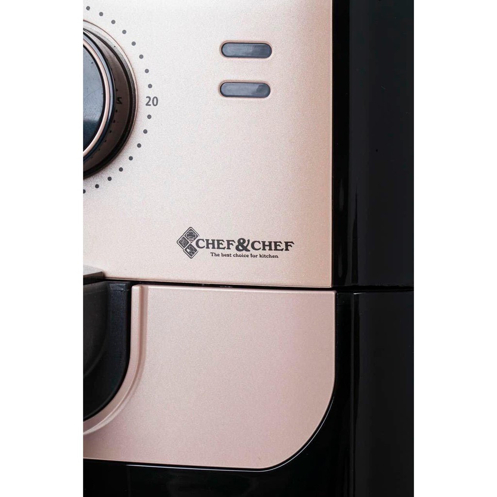 + Nồi chiên không dầu Chef&Chef sử dụng cảm biến nhiệt độ và thời gian, điều khiển cơ với hai nút xoay điều chỉnh nhiệt độ và thời gian,cảm biên