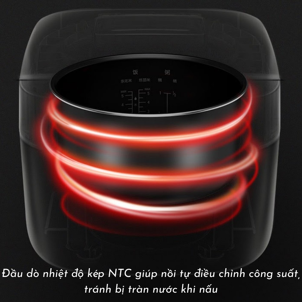 🍀 Đầu dò nhiệt độ kép NTC cũng được trang bị phía trên và dưới nồi giúp theo dõi chính xác nhiệt độ trong nồi ngay thời gian thực