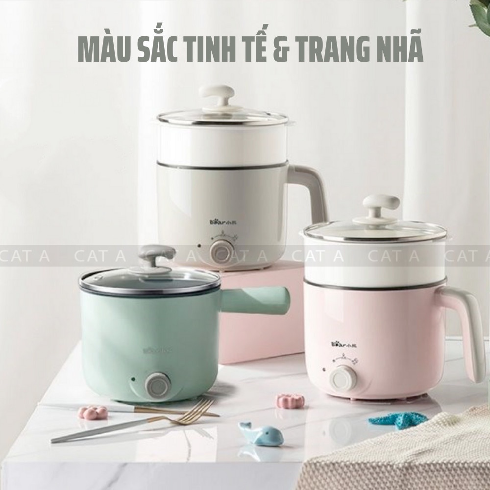 (CHÍNH HÃNG) Nồi điện mini đa năng BEAR 2 tầng chống dính dùng để hấp, hầm cháo, nấu mỳ, lẩu, chiên rán - Công suất 600W
