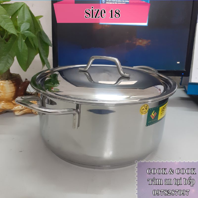Nhà cửa & Đời sống > Dụng cụ nhà bếp > Nồi || [CHÍNH HÃNG] Nồi inox 2 lít size 18 cm Vietcook đáy từCòn hàng