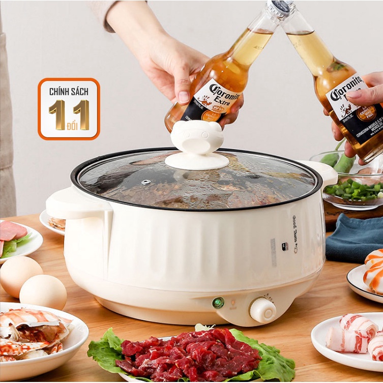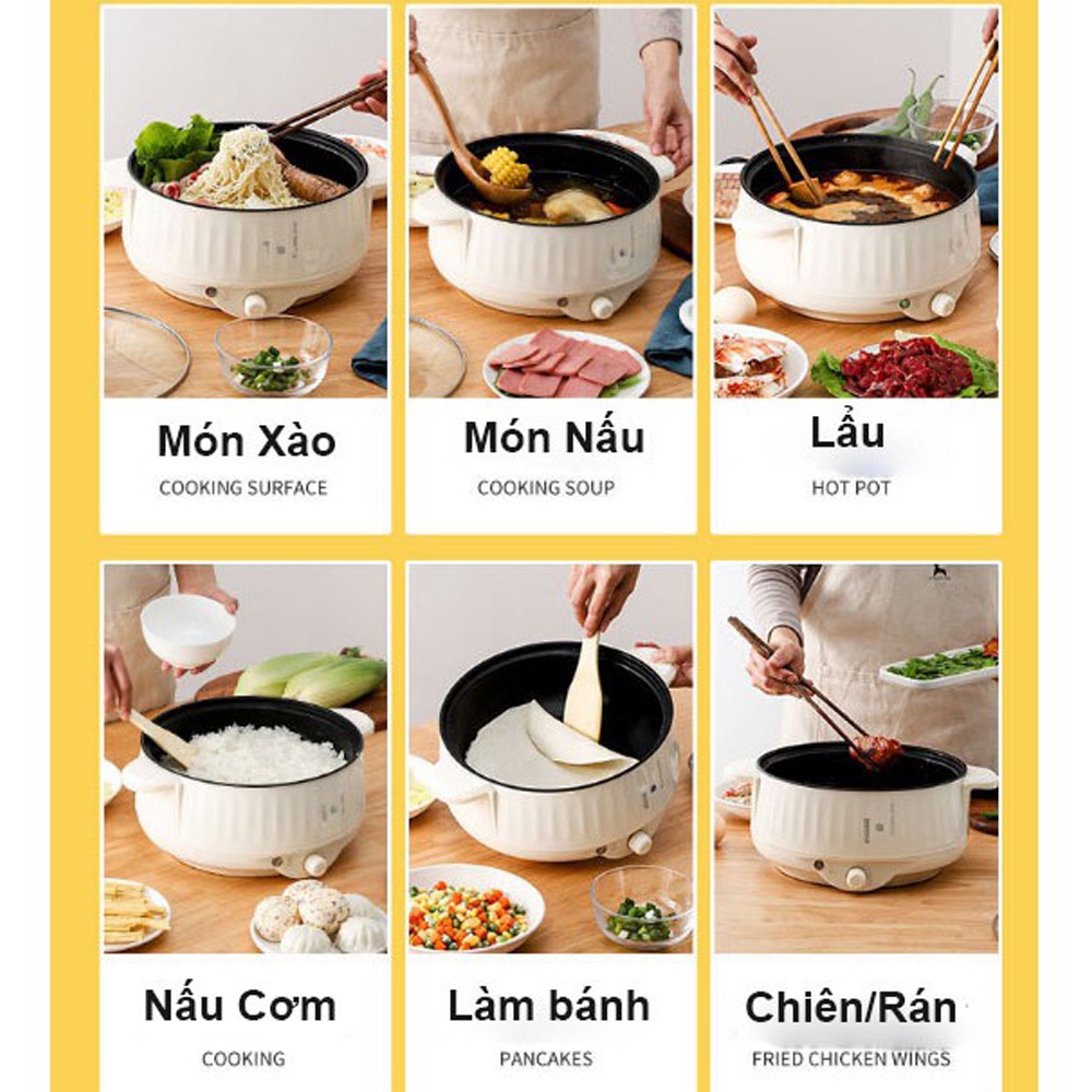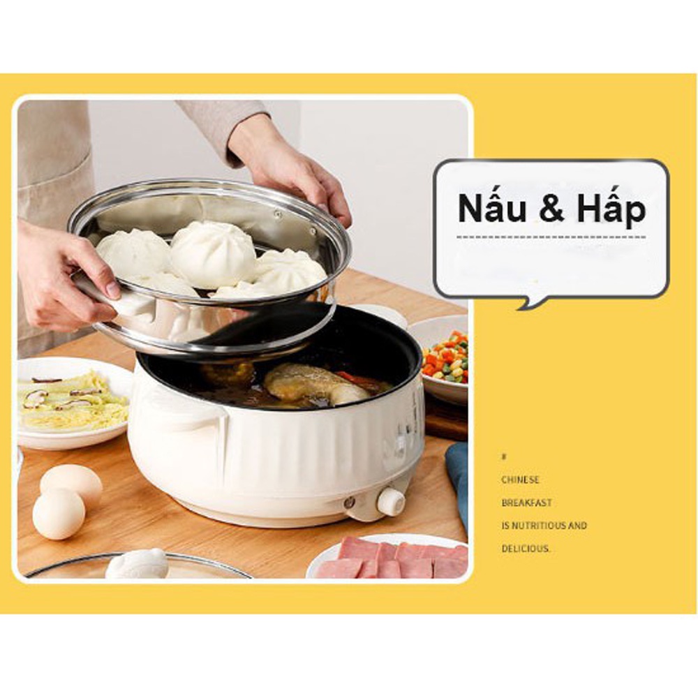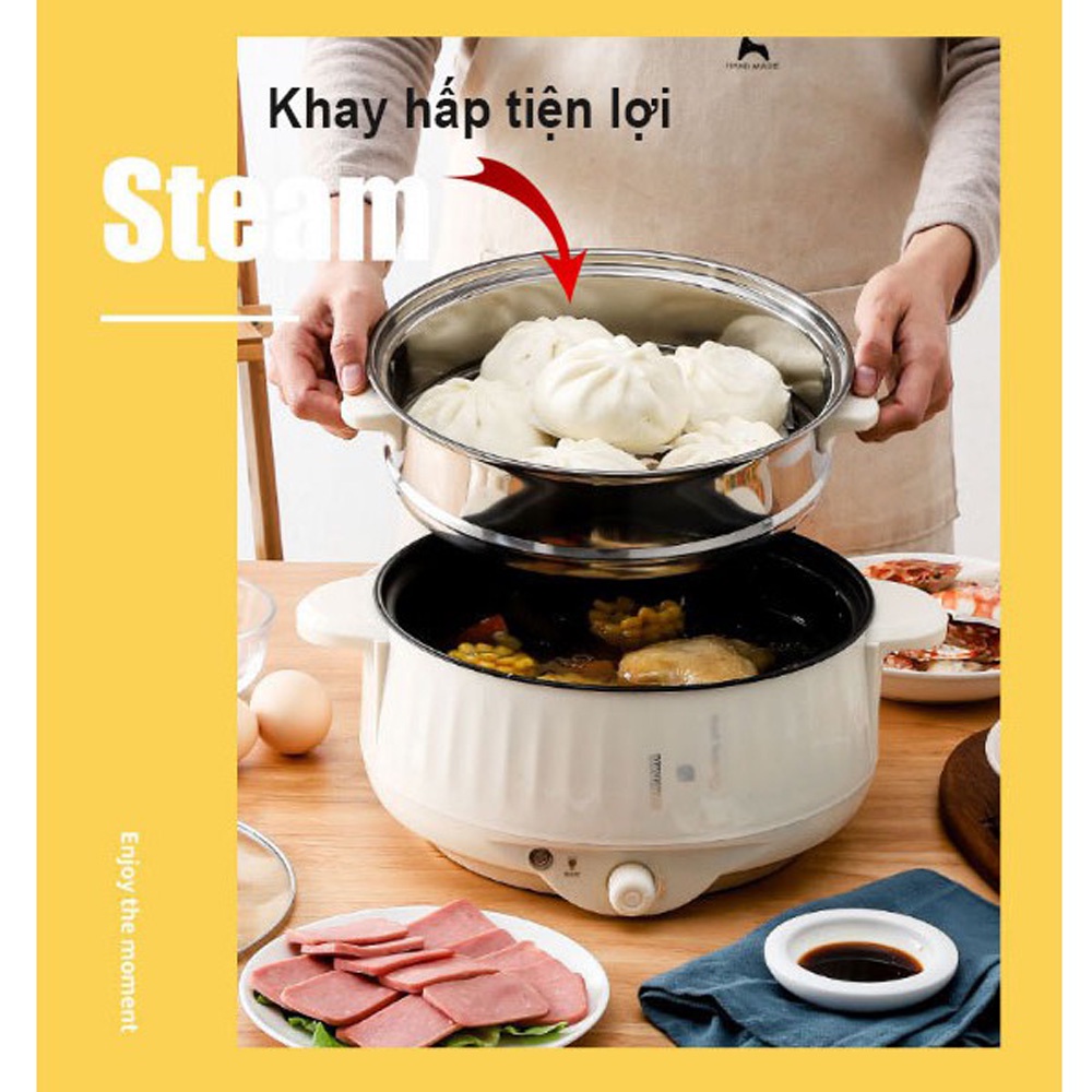 [CHÍNH HÃNG] Nồi Lẩu Cắm Điện Mini Đa Năng (Lẩu , Xào, Nấu, Chiên,Hấp...) Chống Dính Cao Cấp,Bảo Hành Chính Hãng