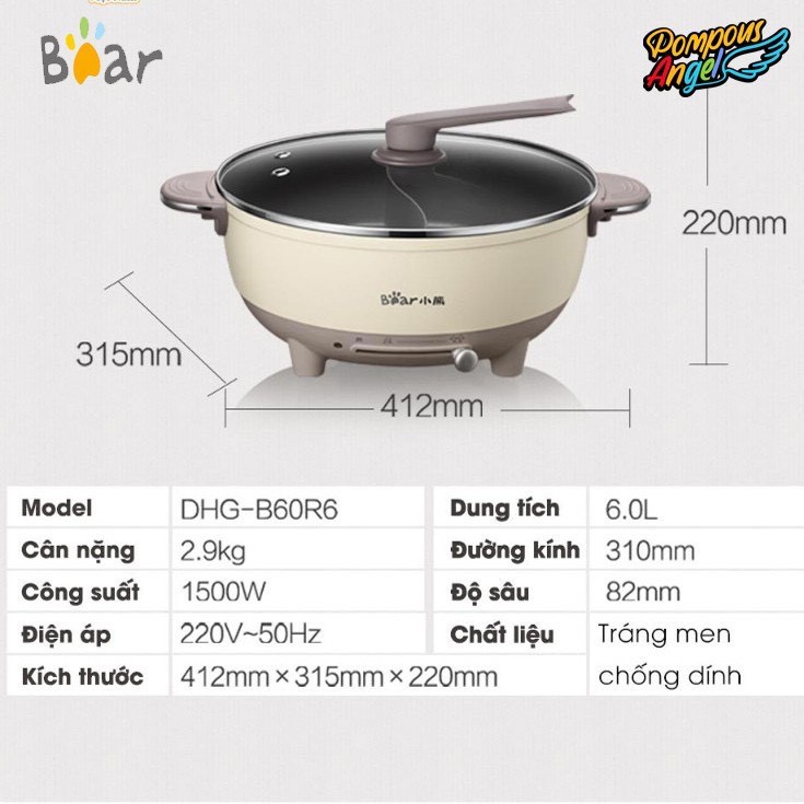 [CHÍNH HÃNG]Nồi Lẩu Uyên Ương Bear DHG B60K1