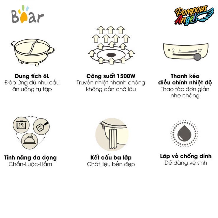 * Nồi lẩu điện đa năng gia đình bear với thiết kế sang trọng với màu kem dịu nhẹ phù hợp vs gia đình nhỏ của bạn
