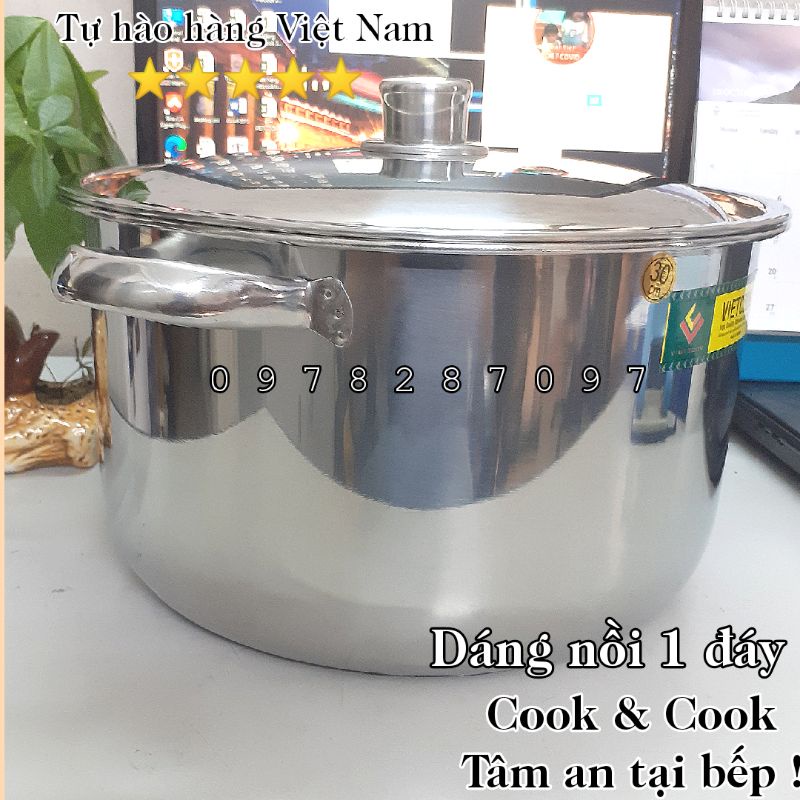 [CHÍNH HÃNG] Nồi luộc gà 3 đáy Vietcook inox 430 đủ size 24cm, 26cm, 28cm, 30cm, 32cm sử dụng được trên bếp từ
