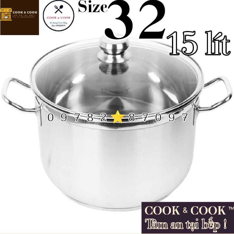 Nhà cửa & Đời sống > Dụng cụ nhà bếp > Nồi || [CHÍNH HÃNG] Nồi luộc gà inox 3 đáy nắp kính size 32 cm VIETCOOK dung tích 15 LÍT sử dụng trên bếp từCòn hàng