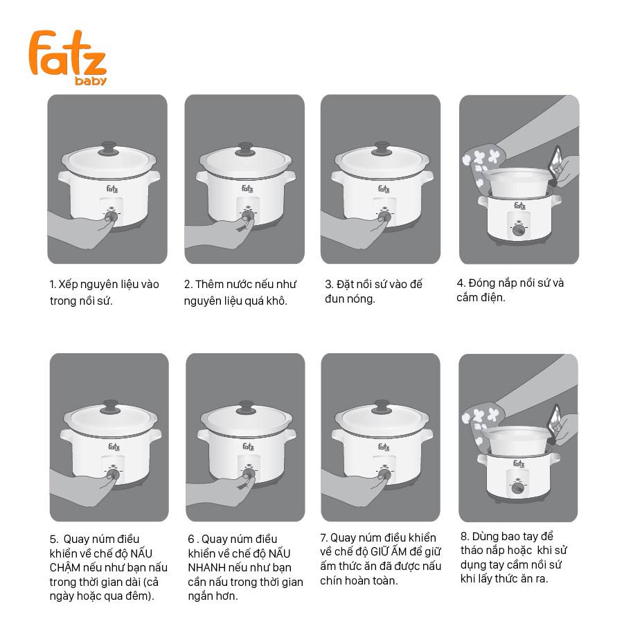 - Chất liệu an toàn: Với thiết kế hiện đại, được làm chất liệu sứ ceramic, không độc hại, chống trào, chống sát dễ lau chùi… nồi nấu chậm Fatz Baby xứng đáng là món đồ không thể thiếu trong gia đình có bé đang bước vào chế độ ăn dặm.
