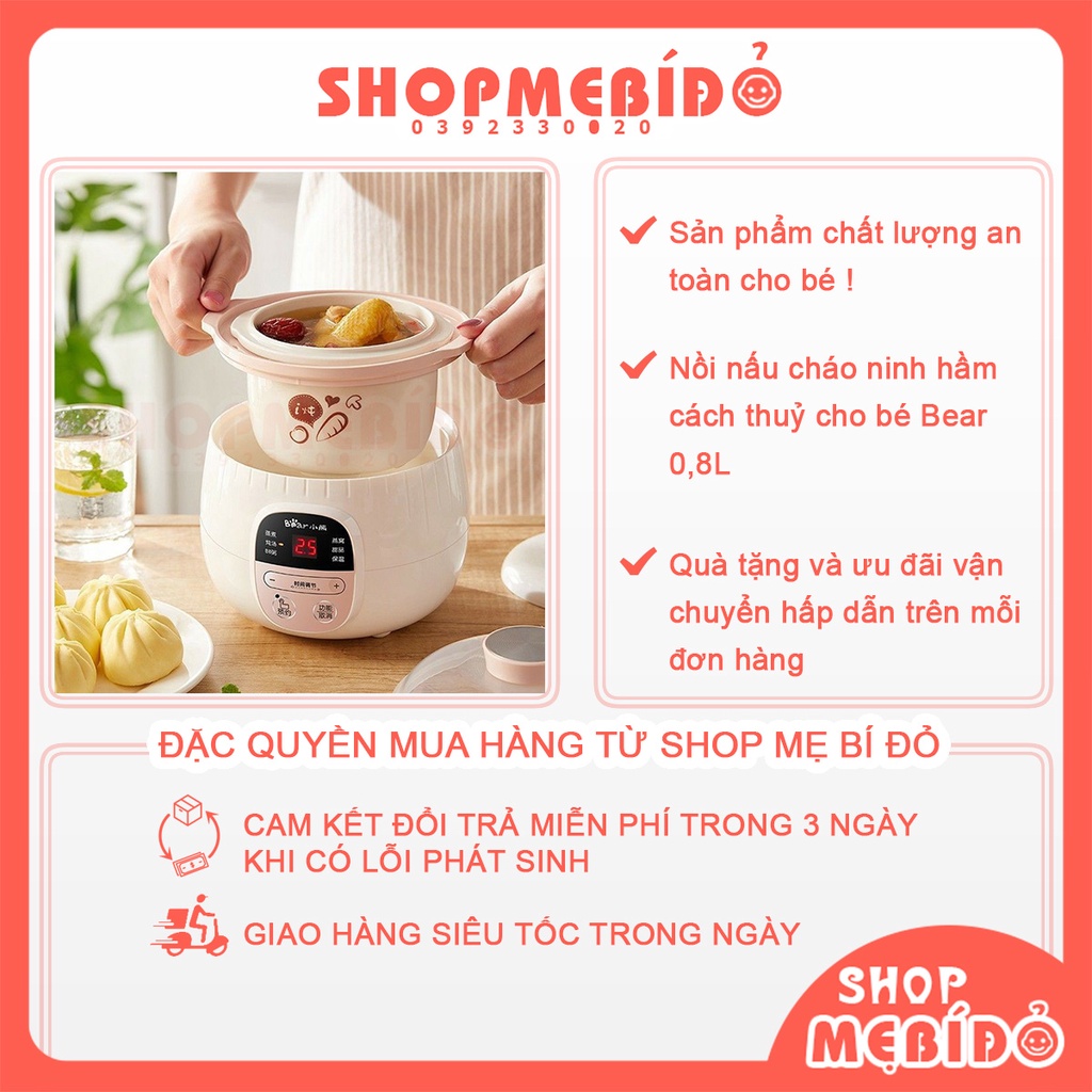 [ CHÍNH HÃNG ] Nồi Nấu Cháo Ninh Hầm Cách Thuỷ Cho Bé Bear 0,8l GD14